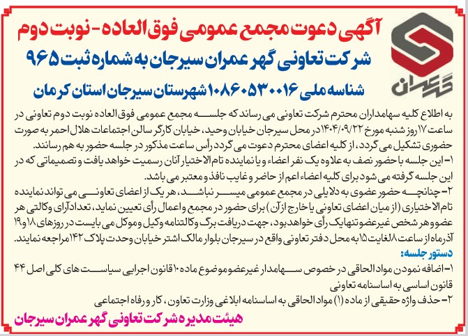 آدرس:سیرجان ـ بلوار مالک اشتر خیابان وحدت پلاک۱۱۱ کدپستی :۷۸۱۶۹۵۳۳۴۸ صندوق پستی :۱۵۹-۷۸۱۷۸